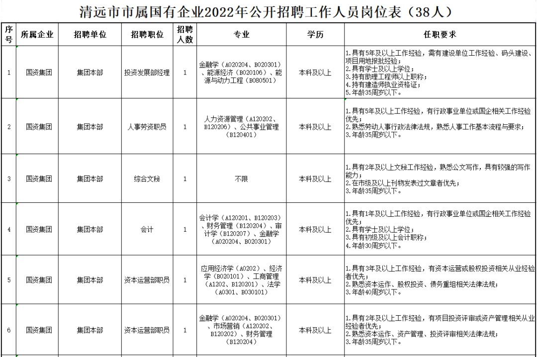 詳見清遠(yuǎn)市市屬國有企業(yè)2022年公開招聘工作人員崗位表。