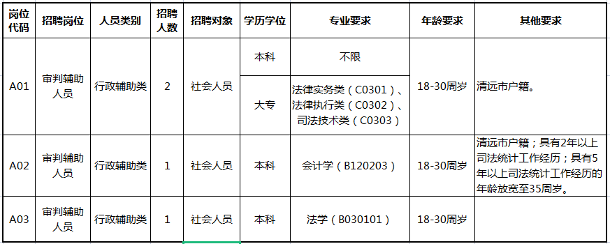 根據(jù)工作需要,清遠(yuǎn)市清城區(qū)人民法院現(xiàn)面向社會(huì)公開(kāi)招聘專項(xiàng)工作聘員4名。具體崗位設(shè)置如下: