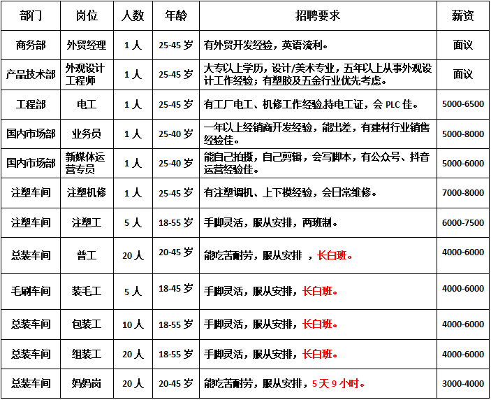現(xiàn)因業(yè)務(wù)發(fā)展需要,急聘以下崗位人員: